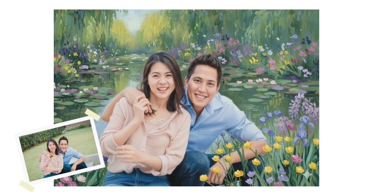 แปลงโฉมภาพถ่ายของคุณให้กลายเป็นภาพวาดพอร์เทรตงดงามในสไตล์อิมเพรสชันนิสม์ ที่ได้แรงบันดาลใจจากจิตรกรระดับโลกอย่าง โคลด โมเน่ต์ (Claude Monet) โดดเด่นด้วยฝีแปรงอันเป็นเอกลักษณ์ บรรยากาศสวนดอกไม้และบึงบัวที่สวยงาม พร้อมแสงธรรมชาตินุ่มนวล ทำให้ภาพของคุณดูราวกับงานศิลปะชิ้นเอก
