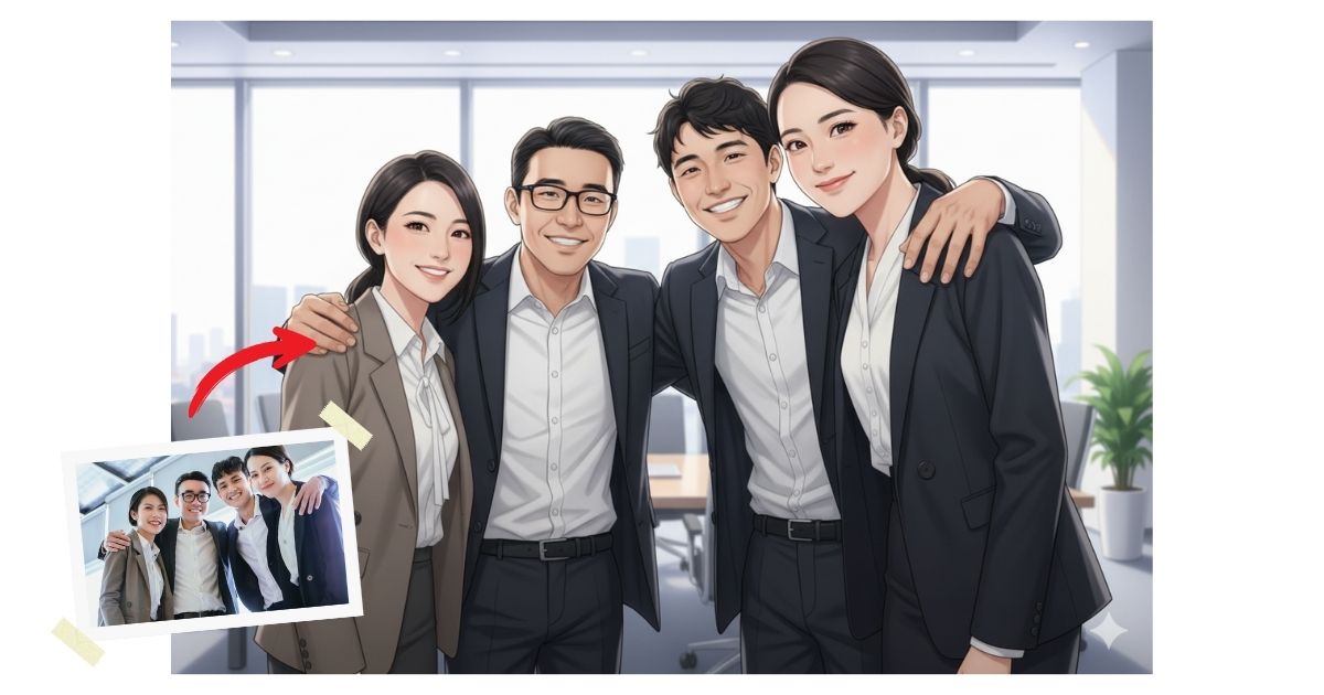 ยกระดับภาพถ่ายของคุณให้กลายเป็นภาพวาดอนิเมะสไตล์โมเดิร์นสมจริง ที่โดดเด่นด้วยลายเส้นคมชัด การลงแสงเงาที่นุ่มนวล และการไล่ระดับสีอย่างมีมิติ