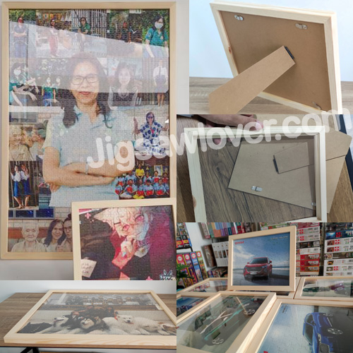 กรอบรูปไม้จริง ลายไม้สน สีธรรมชาติ